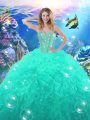 Simple Beading and Ruffles Quinceanera Dresses Turquoise Lace Up Sleeveless Floor Length