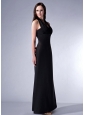 Simple Black Cloumn Halter Bridesmaid Dress Satin Ruch Ankle-length