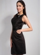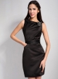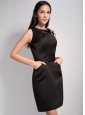 Home >  Special Occasion Dresses >  Little Black Dresses > Simple Black Column Bateau Little Black Dress Mini-length Elastic Wove Satin Hand Made Flower