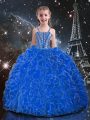 Home >  Quinceanera Dresses >  Princesita with Quinceanera Dresses > Simple Blue Organza Lace Up Sweetheart Sleeveless Floor Length Quinceanera Dresses Beading and Ruffles