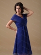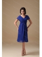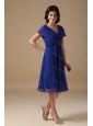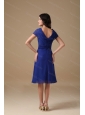 Home >  Special Occasion Dresses >  Dama Dresses for Quinceanera > Simple Blue V-neck Short Sleeves Dama Dress For Quinceanera