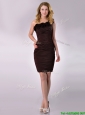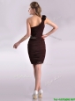 Simple Column One Shoulder Hand Crafted and Ruched Side Zipper Short Bridesmaid Dress in Brown