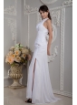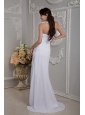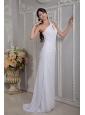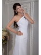 Simple Column One Shoulder Wedding Dress Chiffon Ruch Brush Train