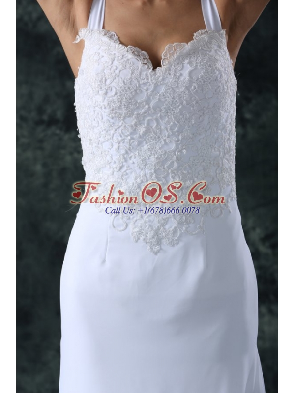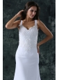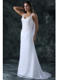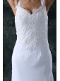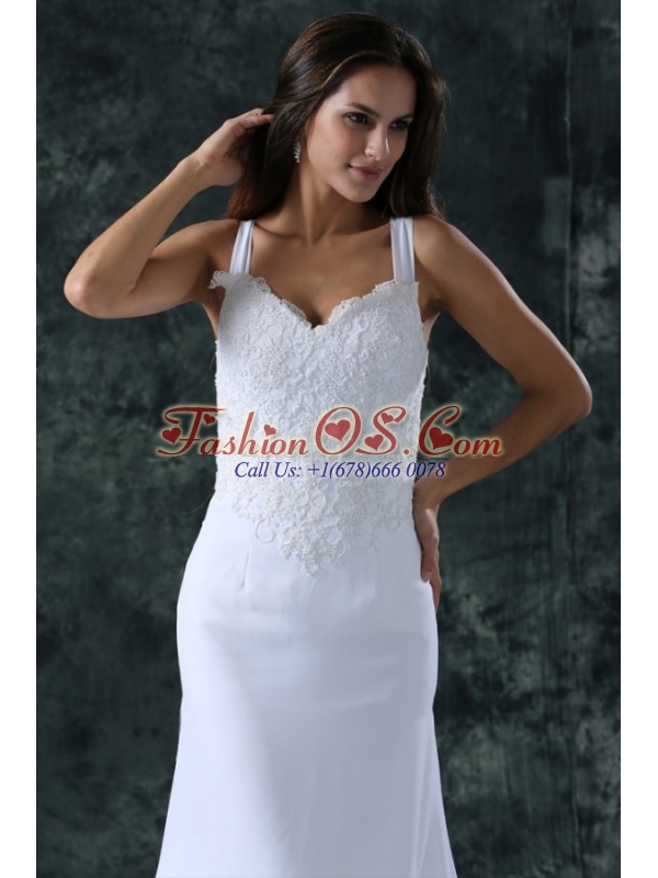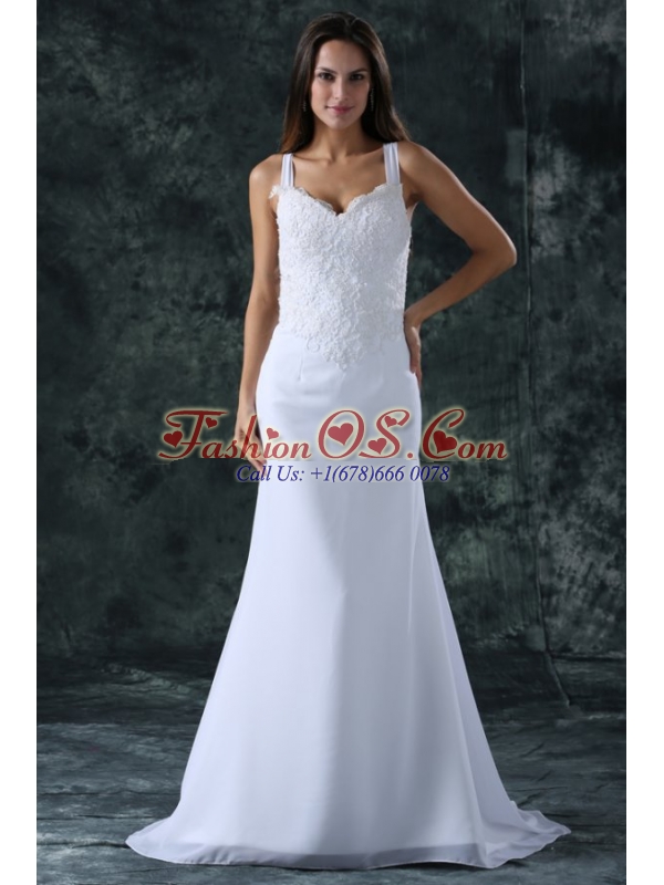 Home >  Wedding Dresses >  Perfect Wedding Dresses > Simple Column Straps Chiffon Brush Train Lace Zipper Up Wedding Dress