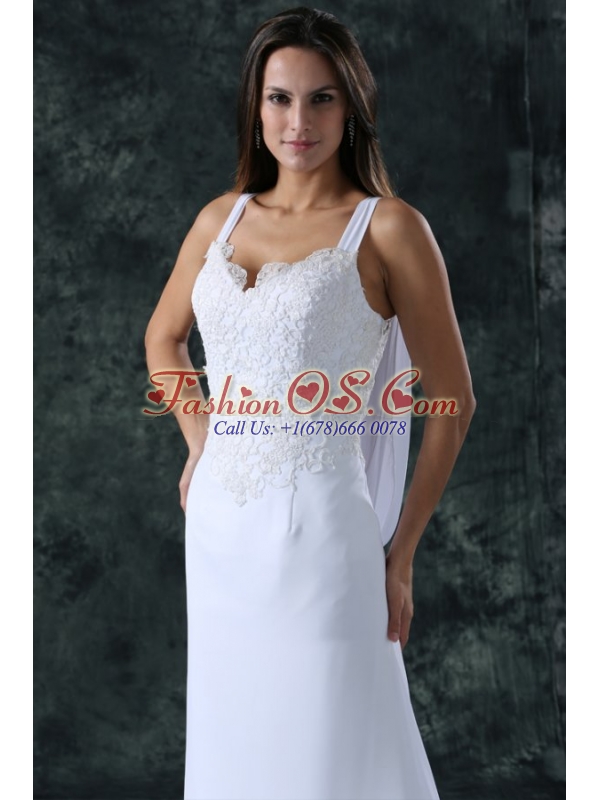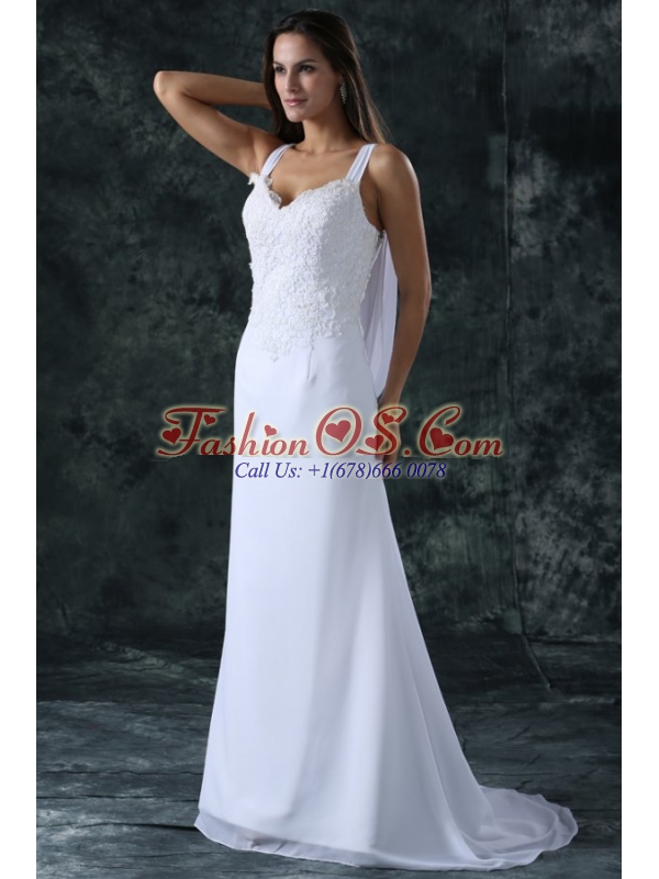 Simple Column Straps Chiffon Brush Train Lace Zipper Up Wedding Dress