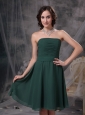 Home >  Special Occasion Dresses >  Homecoming Dresses > Simple Dark Green A-line Strapless Homecoming Dress Ruch Chiffon Knee-length