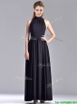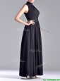 Simple Empire Ankle Length Chiffon Black Mother of the Bride Dress with High Neck