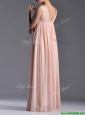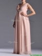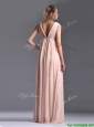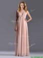 Simple Empire Chiffon Ruching Long Pink Mother of the Bride Dress with V Neck