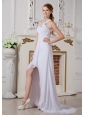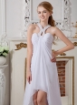 Simple Empire Halter Beach Wedding Dress High-low Chiffon Beading