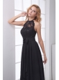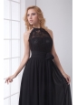 Simple Empire Halter Lace Chiffon Floor-length Black Prom Dress
