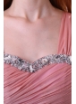 Simple Empire One Shoulder Beading and Ruching Chiffon Prom Dress