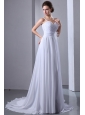 Simple Empire Spaghetti Straps Beach Wedding Dress Court Train Chiffon Ruch
