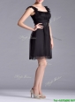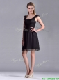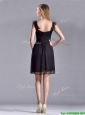 Simple Empire Square Chiffon Black Mother of the Bride Dress with Cap Sleeves