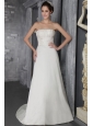 Simple Empire Strapless Brush Train Taffeta Appliques Wedding Dress