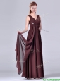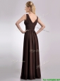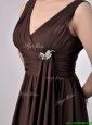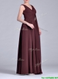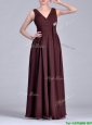 Simple Empire V Neck Chiffon Long  Mother of the Bride Dress in Brown