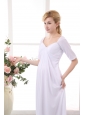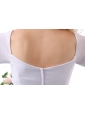 A simple cut dress with no elegance lacked! It will be quite comfortable to wear with a pleated bodice and half-length sleeves. The empire skirt starts from a high waistline which is just beneath the bust curves any figure. The court train adds interest and glamour to this design. The back completes with a fabulous zipper up closure.