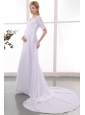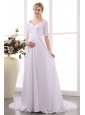 Simple Empire V-neck Maternity Wedding Dress Court Train Chiffon Ruch
