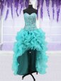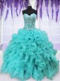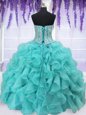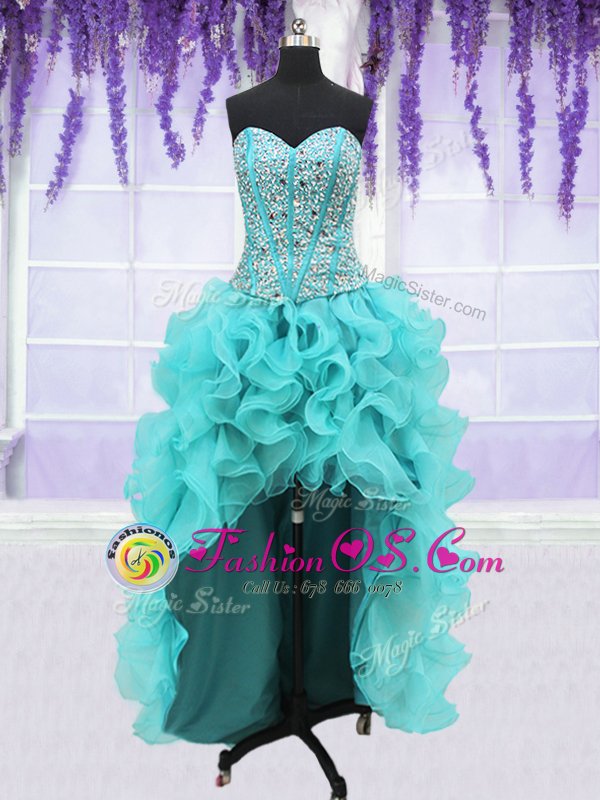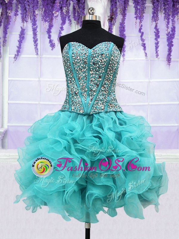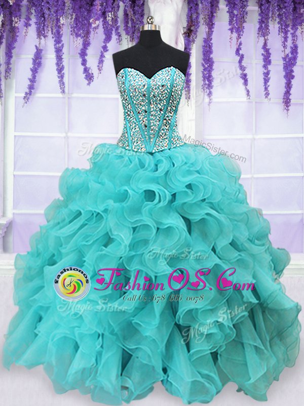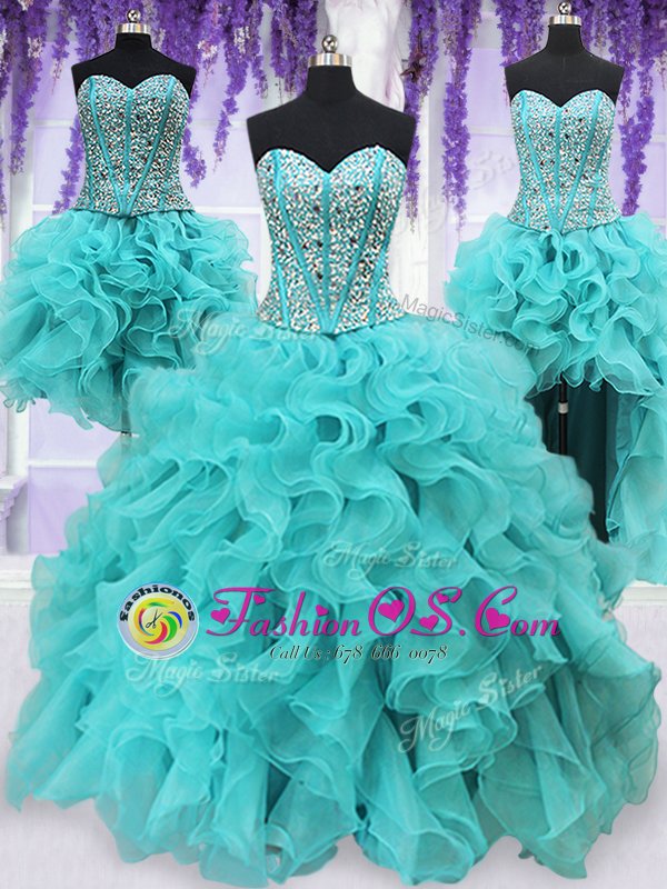Simple Four Piece Sweetheart Sleeveless Organza Quinceanera Gown Beading and Ruffles Lace Up