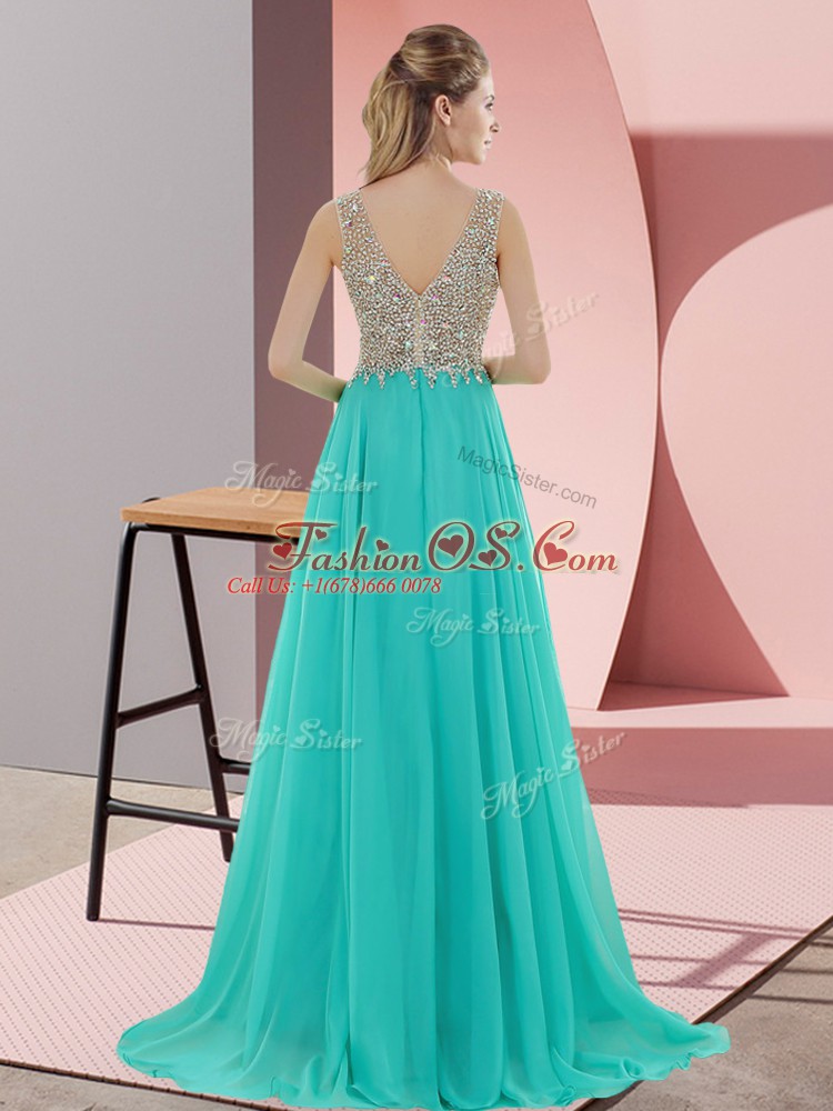 Simple Fuchsia Sleeveless Beading Zipper Celebrity Evening Dresses