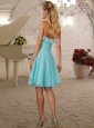 Simple Halter Top Aqua Blue Short Cheap Dam Dress in Chiffon