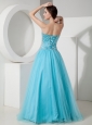 Simple Light Blue A-Line / Princess Sweetheart Quinceanera Dress Tulle Beading Floor-length