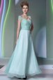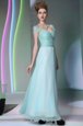 Simple Light Blue Side Zipper Prom Dress Beading and Lace Cap Sleeves Floor Length