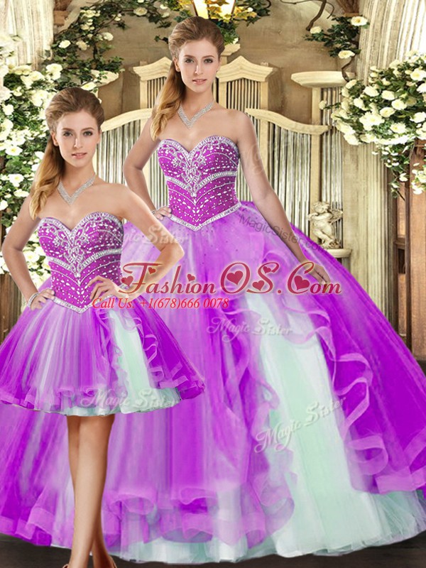 Simple Lilac Sweet 16 Dresses Sweet 16 and Quinceanera with Beading Sweetheart Sleeveless Lace Up