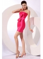 Simple Mini-length Strapless Prom Dress with Beaded Bowknot