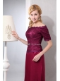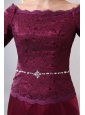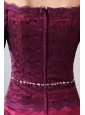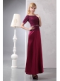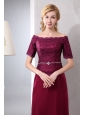 Simple Mother Of The Bride Dress Burgundy Column Off The Shoulder Ankle-length Taffeta and Lace