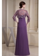 Simple Mother Of The Bride Dress With Ruch Purple Chiffon and Floor-length