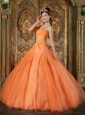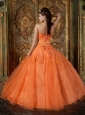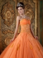 Simple Orange Quinceanera Dress Sweetheart Organza Appliques Ball Gown
