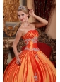 Simple Orange Red Quinceanera Dress Strapless Taffeta Appliques Ball Gown