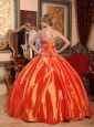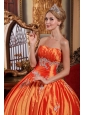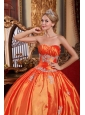 Home >  Quinceanera Dresses >  Cute Quinceanera Dresses > Simple Orange Red Quinceanera Dress Strapless Taffeta Appliques Ball Gown