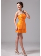 Simple Orange Ruch Satin Mini-length Club Cocktail Dress In Blue Ridge Georgia