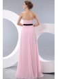 Simple Pink Prom Dress Empire Strapless Belt Brush Train Chiffon