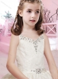 Simple Puffy Skirt Straps Flower Girl Dress with Beading and Belt