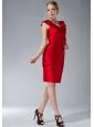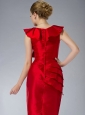 Home >  Special Occasion Dresses >  Mother of the Bride Dresses > Simple Red Column V-neck Mother Of The Dress Mini-length Taffeta Ruch