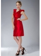 This red knee length dress is available for you any prom. This sexy dress featuring a v-neck design in front and back with sheer cap sleeves. Dazzling ruffled and pleated special straps accent the fitted bodice add a touch of sparkle to this knee length dress. Layered fabric on one side is sure to become a newly style in your closet. This is definitely one dress you should consider.