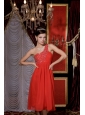 Simple Red Empire Prom / Homecoming Dress One Shoulder Chiffon Beading Tea-length