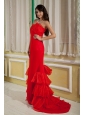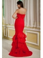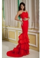 Simple Red Mermaid Prom Dress Sweetheart Chiffon and Organza Brush Train