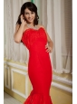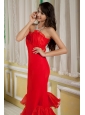 Home >  Prom Dresses >  Unique Prom Dresses > Simple Red Mermaid Prom Dress Sweetheart Chiffon and Organza Brush Train