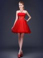 Home >  Bridesmaid Dresses >  Simple Bridesmaid Dresses > Simple Red Sleeveless Beading and Ruching and Belt Mini Length Bridesmaids Dress