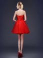 Simple Red Sleeveless Beading and Ruching and Belt Mini Length Bridesmaids Dress