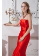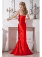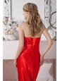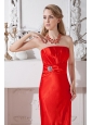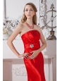 Simple Red Strapless Floor-length Prom Dress Ruch and Beading Taffeta
