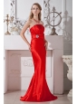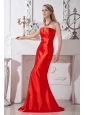 Home >  Prom Dresses >  Cheap Prom Dresses > Simple Red Strapless Floor-length Prom Dress Ruch and Beading Taffeta