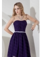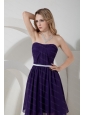 Show your fun and chic in this short prom dress! The whole pleated bodice has a strapless neckline decorates with a silver waistband that releases your passion. Clean lines on the soft chiffon skirt flows freely to creates a good shape when you move. Exquisite zipper up back finishes the whole look. Such a perfect dress, why not bring it to your party!