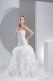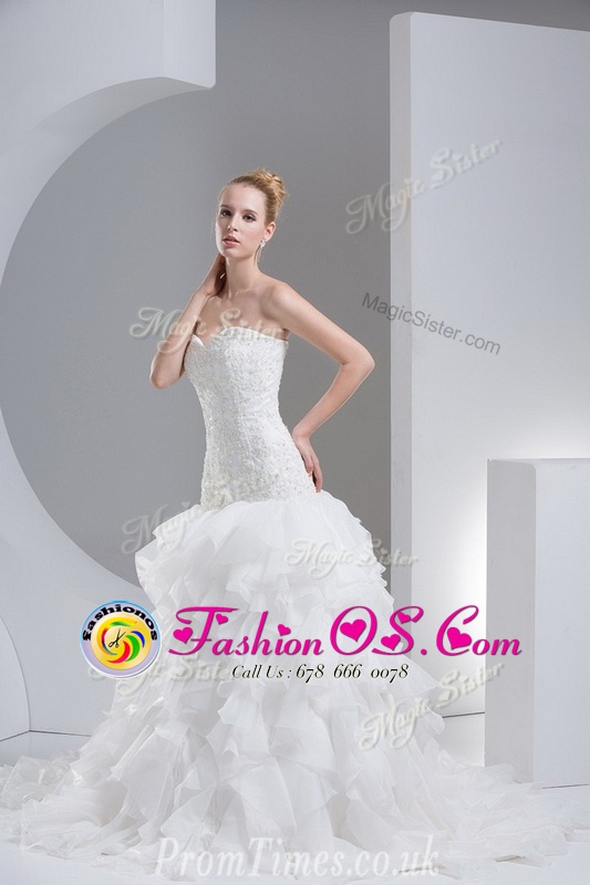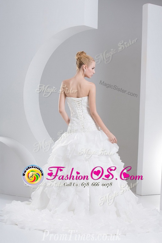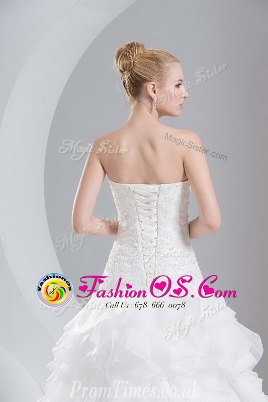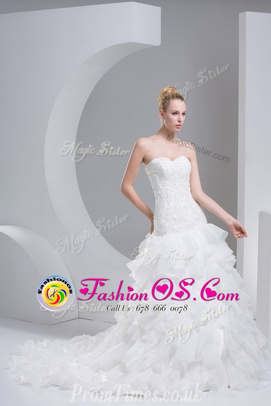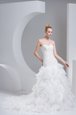 Home >  Wedding Dresses >  Perfect Wedding Dresses > Simple Ruffled White Lace Up Bridal Gown Beading and Ruffles Sleeveless With Brush Train