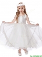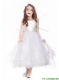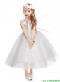 Simple Scoop Belt Tulle Flower Girl Dress in White