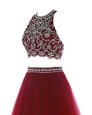 Home >  Prom Dresses >  Unique Prom Dresses > Simple Scoop Sleeveless Clasp Handle Burgundy Chiffon