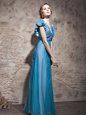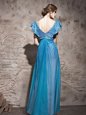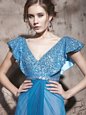 Simple Sequins Evening Dress Teal Zipper Cap Sleeves Floor Length